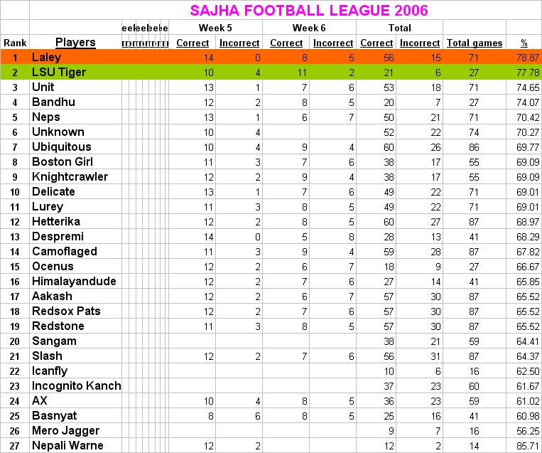 great job Hangu.... 13-1 for the week 6... i think it's the best record so far..... ever thought of getting a job @ Vegas? :=)