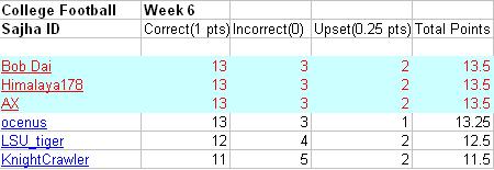 The results of College football Predictions had been posted in this thread. -http://www.sajha.com/sajha/html/openThread.cfm?forum=56&ThreadID=36694 For the People who want to Predict for the College Football click on that link.