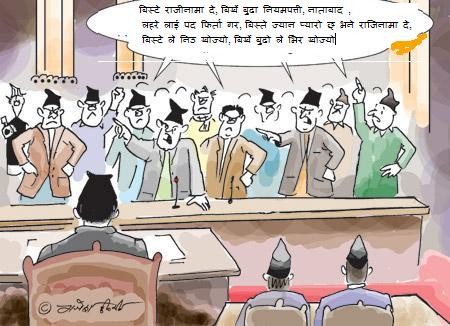 क्या अर्नु रिट्ठे साइला, सम्धी ज्यु ले त दे का हुन मलाई पद तर पातकी गाउले हरुले देखी सकेनन, (क्षमा पाउ है) फेरी आफु रस रङ र तरुनी को मामाला मा अली पछाडि नै छु, यहाँ एस्ता एस्ता धुरन्धर का अगाडि यो, कस्ता कस्ता का गये मुसा छोरा दरबार भने झै:", पद चलाऊन गारै होला जस्तो लाग्यो र आफु पारीयो फिरन्ते , घुमेर खाइ रा बानी, एक थालो मा बसेर काम गर्न सक्तिन तेसैले ठोक्दे राजिनामा, आउउलान नि कोइ न कोइ,