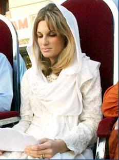 That white lady married Paki Cricket legend Imran Khan. Her name is Jemima Godlsmith.