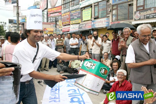 नेपालका अन्तिम राजा ज्ञानेन्द्र शाहले नारायणहिटी छोड्ने र पत्रकार सम्मेलन गरेर आफ्ना मनका कुरा बताउँदै गर्दा राजधानीको सडकमा चाहिँ नागरिक समाजका व्यक्तित्वहरुले ज्ञानेन्द्र शाहलाई नागार्जुन दरबार दिएकोमा सांकेतिक विरोध गरे । उक्त सांकेतिक विरोधमा उनीहरुले ज्ञानेन्द्रलाई बासस्थानको अभाव टार्नका लागि जनस्तरबाट चन्दा उठाएर बासस्थानका लागि रकम जोहो गरे ।