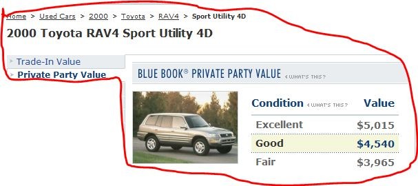 Thanks Gajjab bro, I also did the kbb after your post. I added the A/C and automatic transmission and the result like this. It means I can pay up to 5 grands.Thanks for your suggestion. | | | Excellent | $5,915 | | | Good | $5,440 | | | Fair | $4,865 |