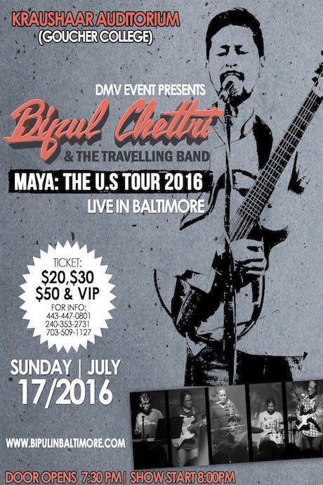 Bipul is coming to US with his band on MAYA TOUR and will be stopping at BALTIMORE on JULY 17, please come and enjoy his live performance.